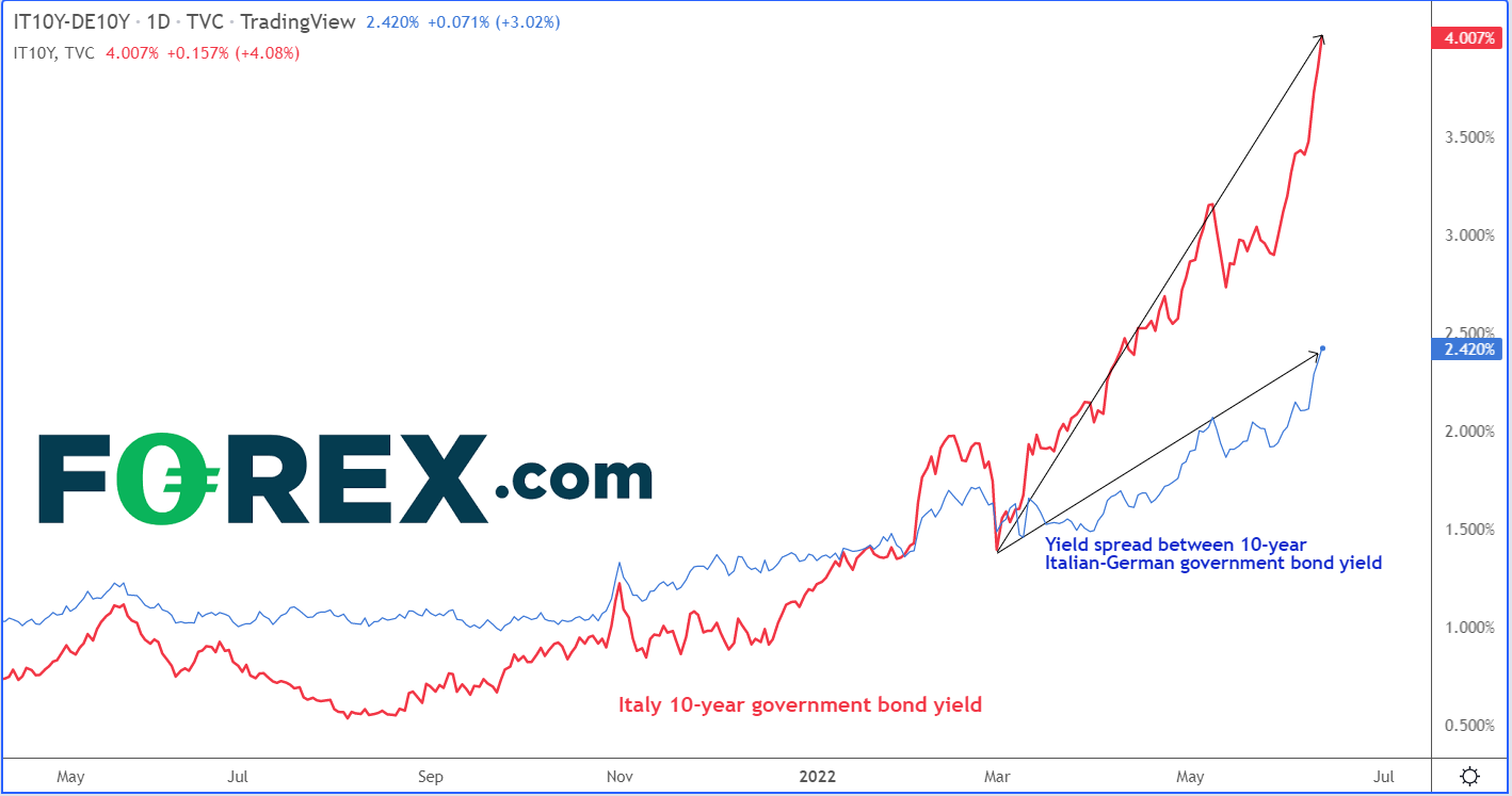 欧洲市场当前情绪非常消极。德国DAX指数周一午盘前下跌2.5%。欧元下破1.05。随着欧洲债券抛售加剧,意大利10年期国债收益率2014年以来首次触及4%。股票、欧元和加密货币等风险资产承压加剧。
