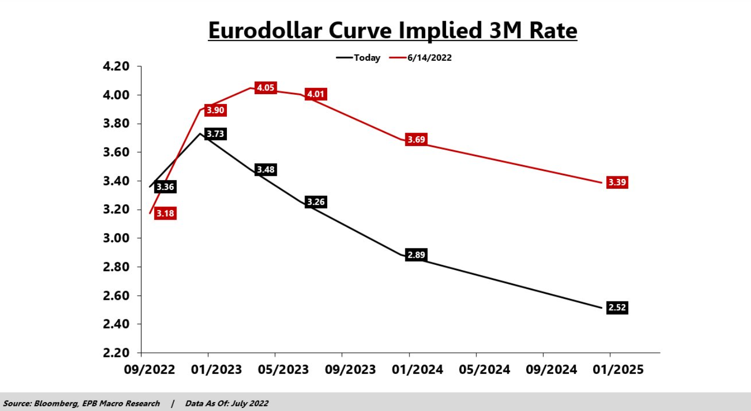 值得注意的是,市场同样暗示,“通胀洪峰”或已过。从5年期和5年期远期盈亏平衡来看,交易者目前预测美国通胀率达到美联储的2%目标。原因可能是美联储对通胀的积极响应,也可能是期待已久的、有关“过渡性”扰动的警告。联邦基金期货市场交易者现在计入超过80个点子FOMC在2023年降息的前景: