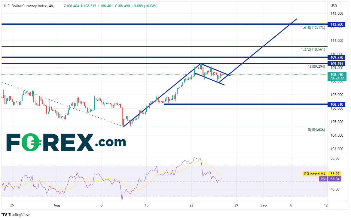 二季度GDP数据陈旧,但其被上修,尤其是物价指数分项指标被上修,可能需要鲍威尔周五讲话时给予解释。在周五年会召开之前,交易者小心谨慎。一旦鲍威尔开始讲话,美元指数或出现震荡。