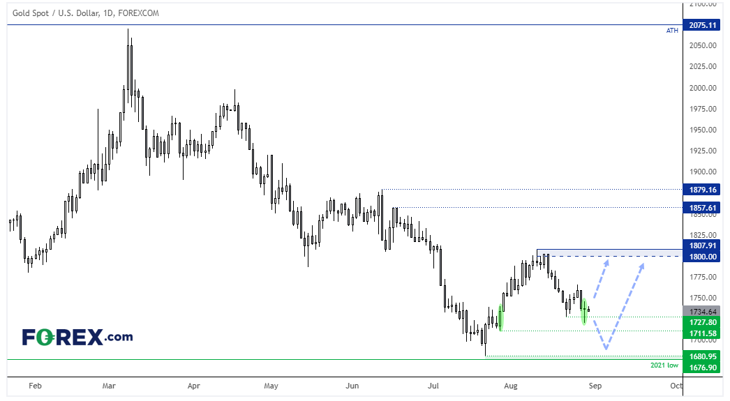 总而言之,我怀疑黄金的下行空间可能有限。如上所述,2021年低点1767自2021年以来一直构成支撑。如果价格朝该位下探,或促使多头重新涌现继而提振市场。即便金价继续下跌,依照附近的1700支撑位判断,空头的风报比似乎也不够吸引人。
