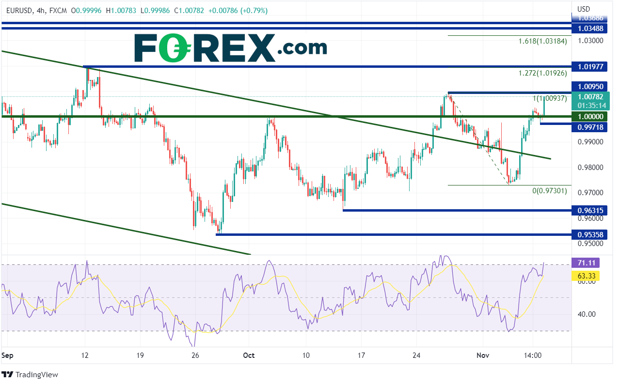 如果通胀数据低于预期,预计美元将会走低。因此,欧元兑美元可能会走高。 自2022年2月达到峰值1.1495以来,该货币对一直处于下行通道。9月28日,该货币对触及低点0.9536,随后反弹至1.0000。自此,欧元兑美元一直在0.9705至1.0094之间盘整,同时突破了下行通道的上沿。