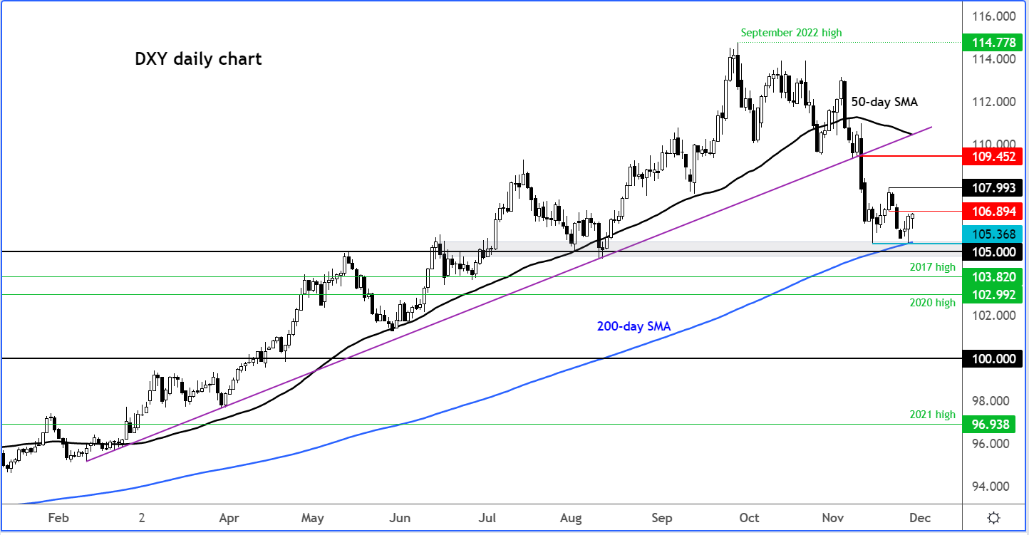 美元指数在其200日均线和1.0500-1.0540区域的支撑附近显示出一些好转的迹象。但现在讨论此次大幅反弹是否会转为全面反弹还为时过早。然而,这是一个关键的支撑区域,我们仍处于长期牛市趋势中。在最近的抛售之后,我认为下行风险现已减少。