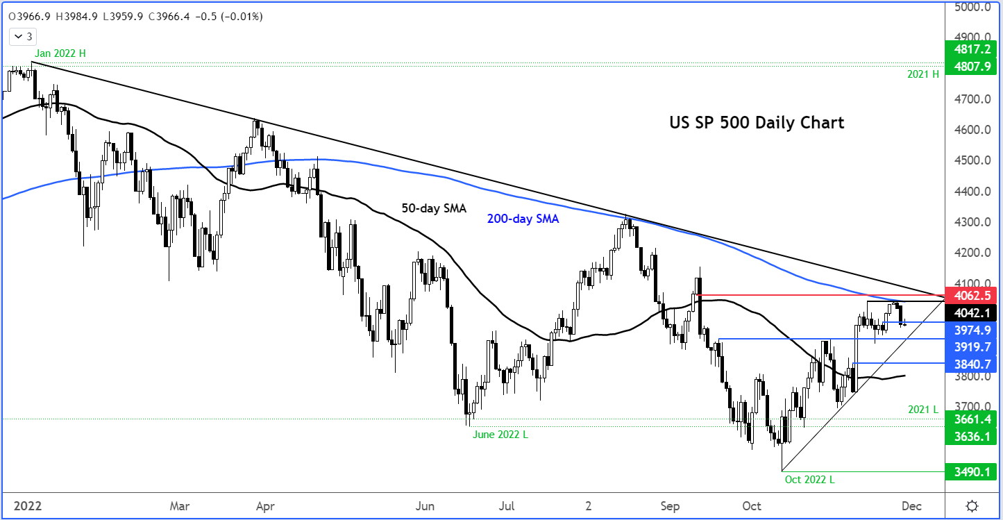 在撰写本文时,4975附近的短期支撑正在受到考验。我个人认为下一个重要点位在3920附近,它同样与短期上升趋势线汇合。在此之下,3840是多头防守的下一个点位。