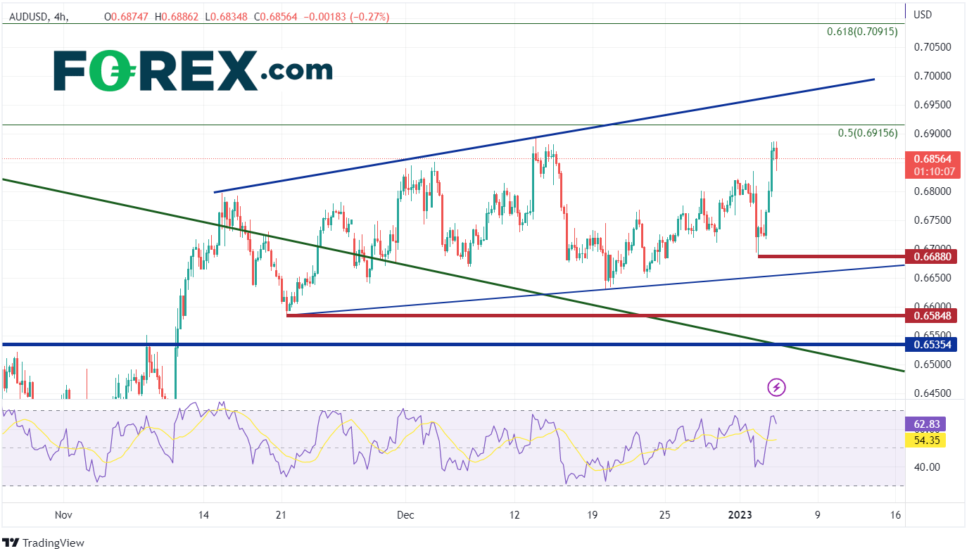 有消息称,中国正考虑从41日起部分放宽进口澳煤限制。此前由于澳大利亚同其他国家一起呼吁调查对中国进行新冠源头调查,导致澳煤进口遭禁。中国一边采取措施挽救房市和“大而不倒”地产开发商,一边设法缓释疫情防控措施突然放开后造成的疫情冲击及其对经济的影响。澳大利亚等国却要求自15日起,来自中国的游客须提交新冠检测阴性证据才能入境。所有来自中国的利用好消息推助澳元抓住中国未来经济扩张的涨势,进而刺激澳元/美元上涨。