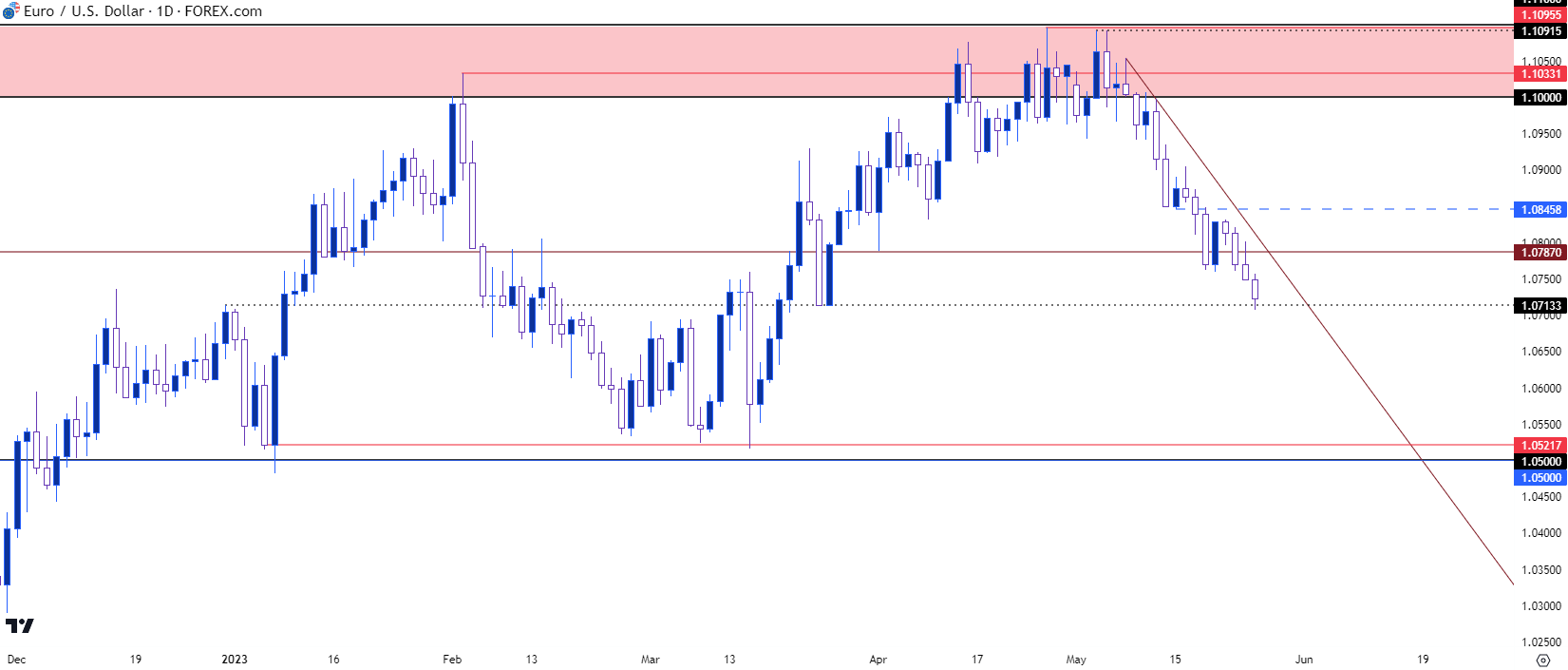 图表由James Stanley绘制,Tradingview上的欧元/美元